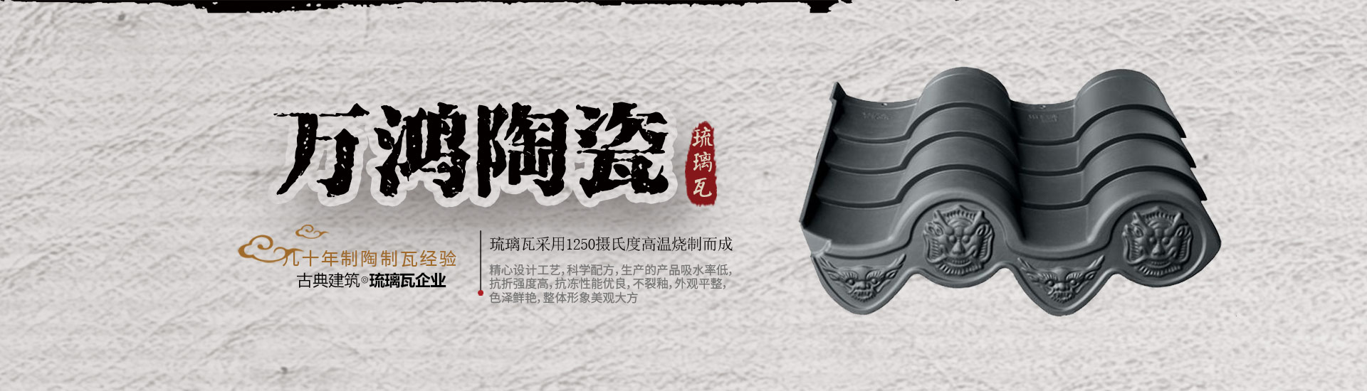 宜興市萬鴻陶瓷有限公司是國內(nèi)生產(chǎn)古建琉璃瓦企業(yè),也是宜興市琉璃瓦行業(yè)龍頭骨干企業(yè)。琉璃瓦采用1250攝氏度高溫?zé)贫桑咀浣?jīng)濟(jì)發(fā)達(dá)的宜興市丁山鎮(zhèn),臨近寧杭高速公路、新長(zhǎng)鐵路、錫宜高速和104國道,交通十分便利。 萬鴻陶瓷擁有幾十...